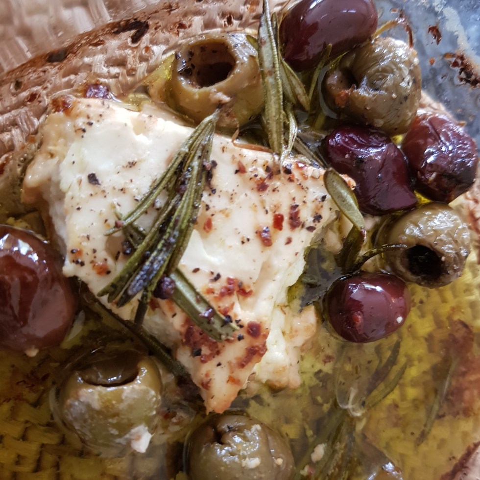 Baked feta, olives and lemon