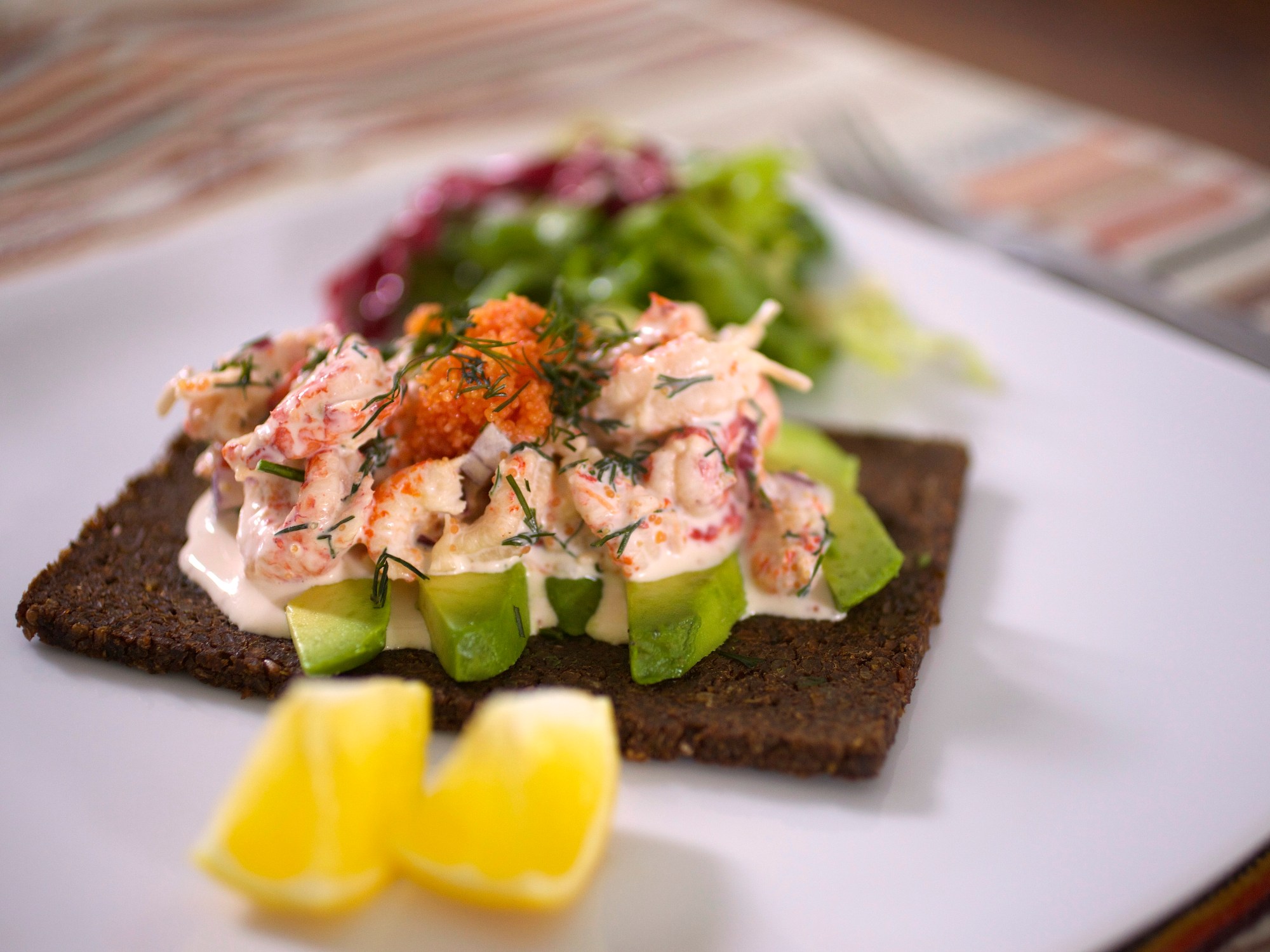 This is a tasty and fresh Swedish open sandwich that deserves the freshest ingredients. As a Pescatarian although I am reducing my intake of fish these day, this is strangely satisfying lunch. I say strangely because it doesn’t look like a big portion on the plate but the combination of dense rye bread, creamy avocado and crayfish mayonnaise is a filling meal.
