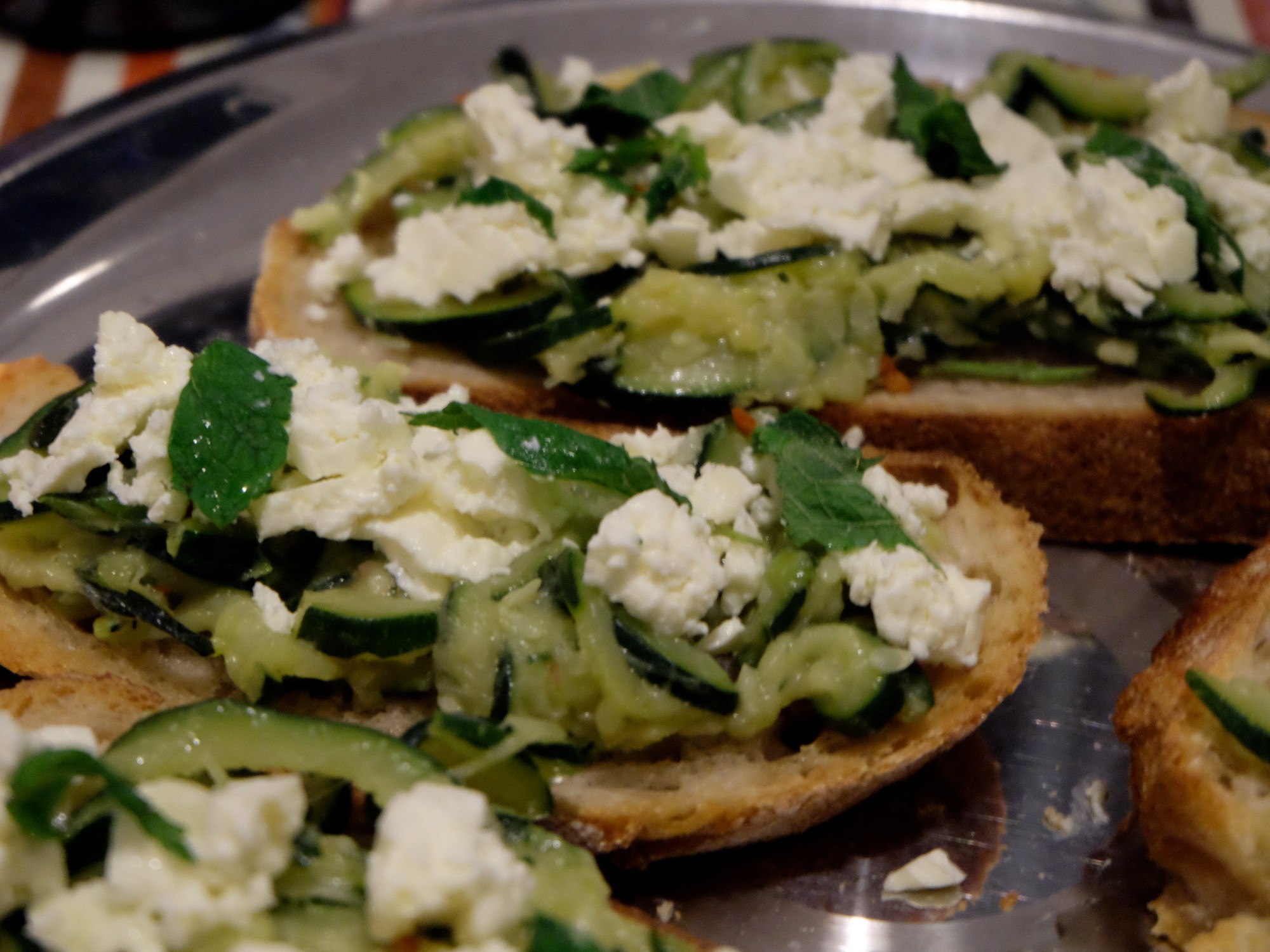 2. Toast slices of your bread and spoon on dollops of the garlicky courgette mixture, squeeze over some lemon juice, crumble the feta and then sprinkle with some fresh mint leaves. Drizzle with your best extra virgin olive oil and a twist of black pepper. Bite into your crispy, soft and tangy treat!