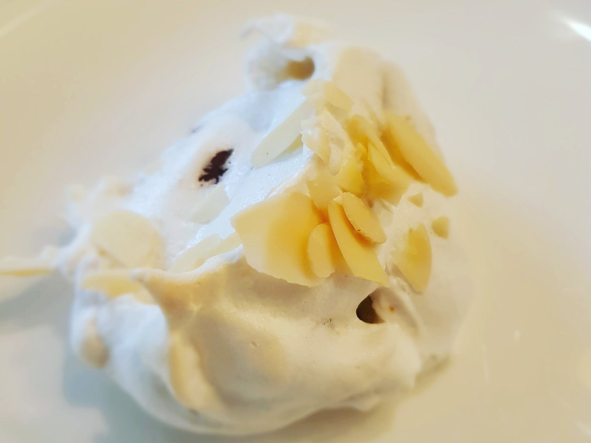 I looked at Nigella’s original recipe and realised I didn’t have some of the ingredients so I freestyled and added a combination of ginger, dark chocolate and flaked almonds and it worked out pretty well. Her slightly modified recipe is below. Makes around 8-10 big splodge meringue cookies.