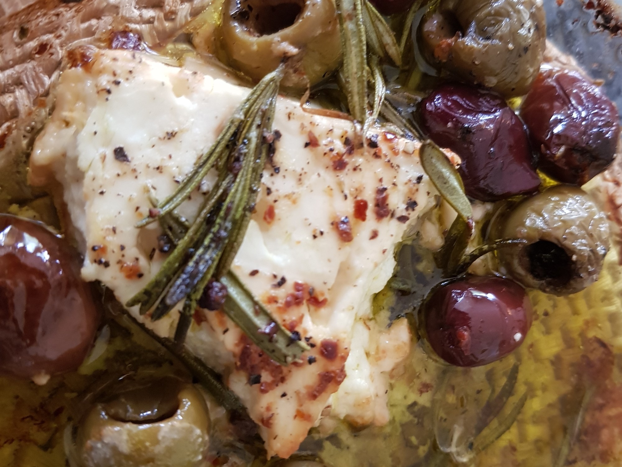 We’ve made this a few times now as part of a mezze style dinner. It is mindblowingly delicious. The roasted feta is soft and unctuous complemented by the salty juiciness of the olives, seasoned with rosemary and a hint of chilli. We mopped this up with toasted ciabatta and a cold glass of white wine.